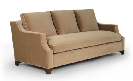 Loose seat and back cushions, boxed with welt. The fill is 50/50 Down/Feathers with a foam core in the seat. Frame is detailed with welt. Mahogany shaped legs finished in a standard stain. Custom modifications available.