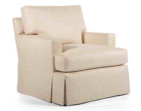 Loose seat and back cushions, boxed with toptitching. The fill is 50/50 Down/Feathers with a foam core in the seat. Topstitch detailing on frame. Skirt from deck is hemmed to 1/4" from the floor. Custom modifications available.