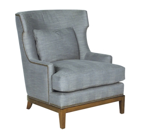 Tight crescent back with kidney pillow. Loose seat cushion - boxed with welt. The fill is 50/50 Down/Feathers with a foam core in the seat. Mahogany base with apron and tapered legs finished in a standard stain. Shown with optional antique brass nail head detailing on frame. Custom modifications available.