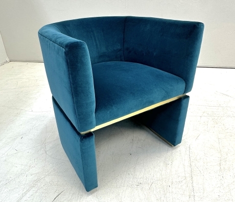 Tight barrel back. Tight seat. Brushed brass detailing at seat and base.