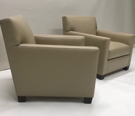 Tight back. Loose seat cushion boxed with topstitching. Cushion fill is 50/50 Down/Feathers with a foam core. Mahogany wedge feet finished in a standard stain.