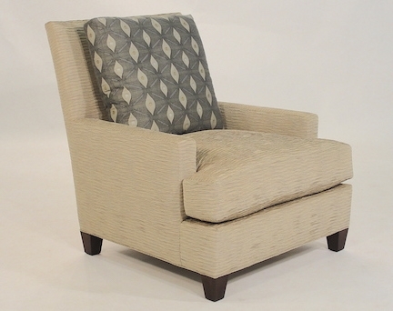 Loose seat cushion and pillow back, boxed with topstitching. Mahogany tapered legs finished in a standard stain.