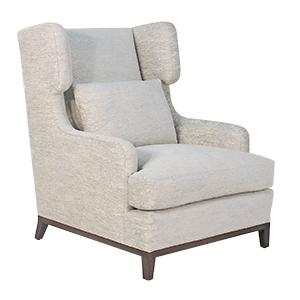 Tight banded back with kidney pillow. Loose seat cushion - boxed with welt. Cushion fill is 50/50 Down/Feathers with foam core in the seat. Mahogany base with tapered legs finished in a standard stain. Shown with optional topstithing on cushion and blind edge detail on frame. Custom modifications available.