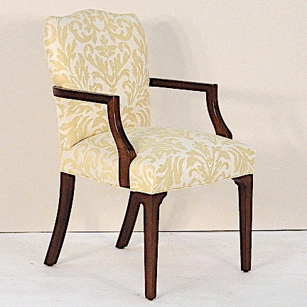 Tight seat and back. Mahogany arms and legs finished in a standard stain.