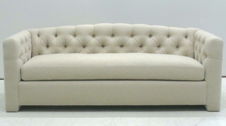 Tufted back and arms. Loose seat cushion, boxed with topstitching. Cushion fill 50/50 Down/Feathers with foam core. Upholstered base. Customizations available.