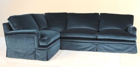 Available custom in any configuration. Loose seat and back cushions detailed with welt. Fill is 50/50 Down/Feathers with foam core in seats. Dressmaker skirt with edge roll at front deck.