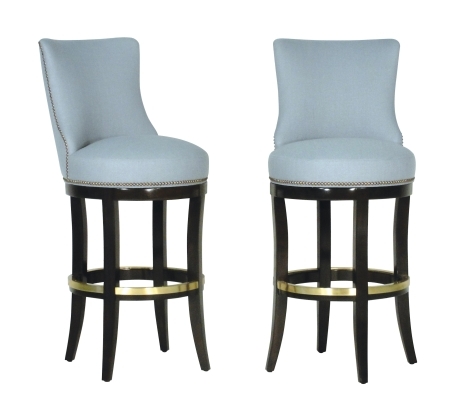 Tight back and seat with swivel. Optional standard or memory swivel. Nail head detailing on frame. Mahogany legs and stretchers finished in a standard stain. Rail caps all around. Bar or Counter heights available. Custom modifications available.