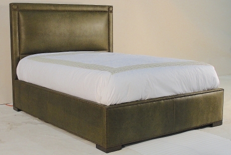 Boxed headboard and surround with nail head detailing. Mahogany feet finished in a standard stain.