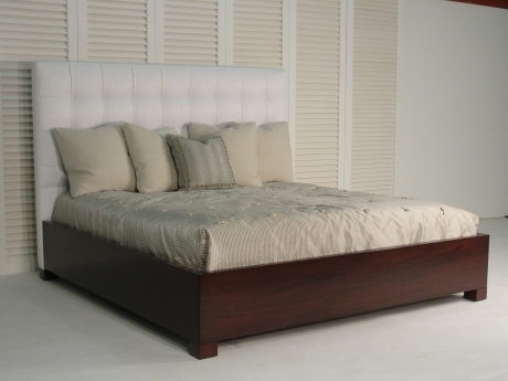 Biscuit tufted headboard. Mahogany surround and feet finished in a standard stain.