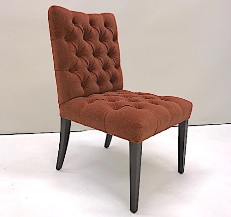 Button tufted seat and back. Mahogany legs finished in a standard stain.