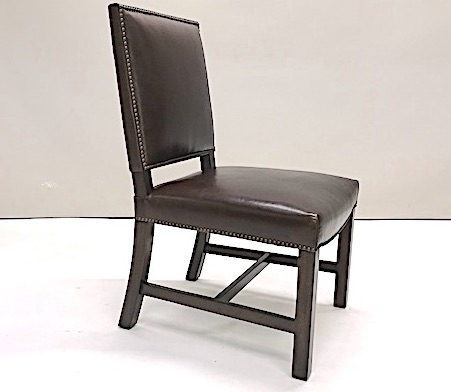 Tight seat and back. Antique brass nail head detailing. Mahogany legs and stretchers finished in a standard stain.