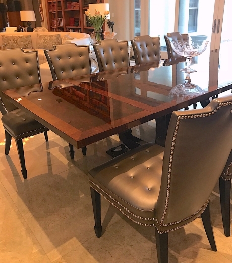 Button tufted seat and back. Brushed nickel nail head detailing on frame. Mahogany shaped legs.