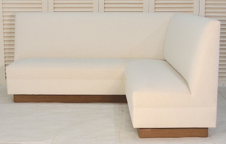 Tight seat and back. Mahogany recessed plinth base finished in a standard stain. Custom configurations available.