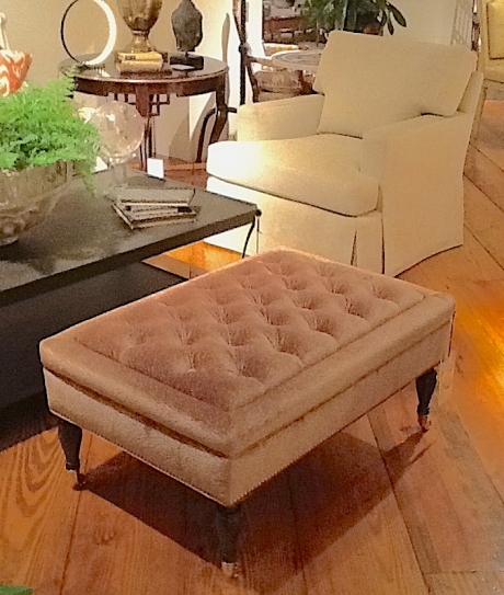 Shown is the Harwood lounge chair and the English tufted ottoman.